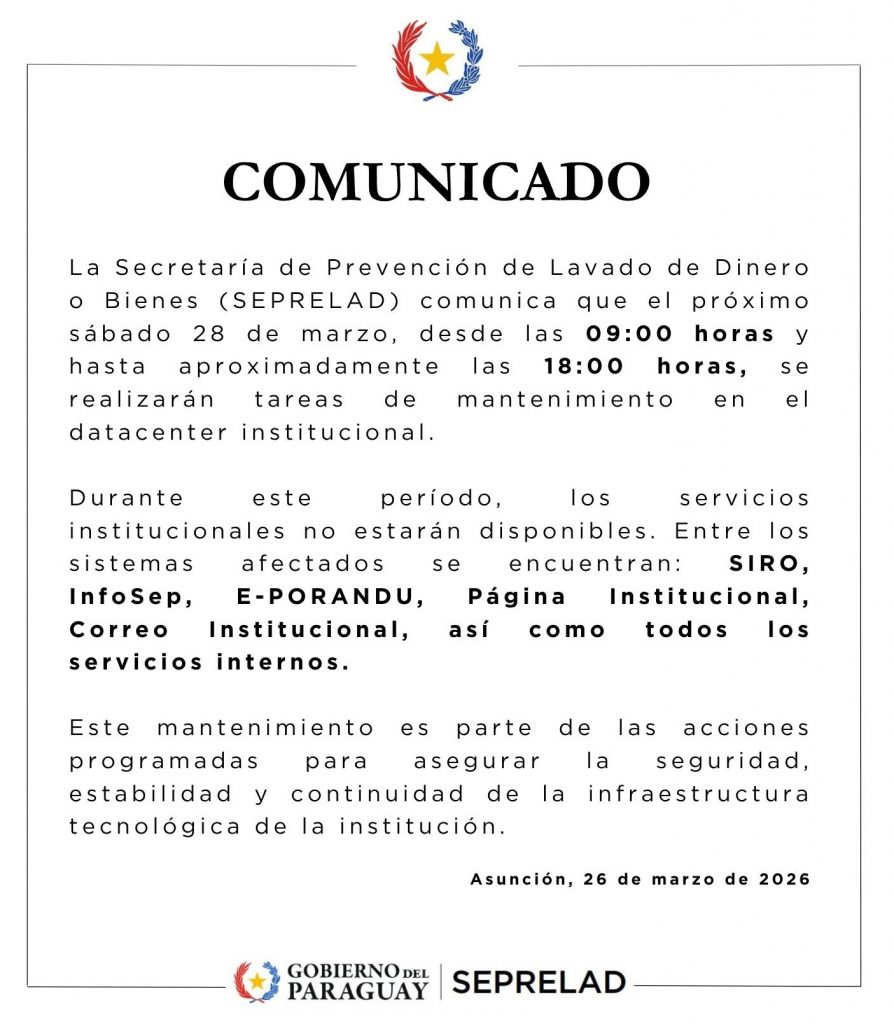 La Secretaría de Prevención de Lavado de Dinero o Bienes SEPRELAD invita a los Oficiales de cumplimiento y responsables de unidades de...