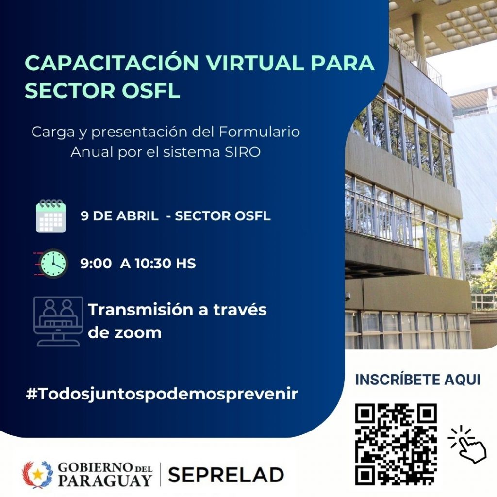 SEPRELAD invita a los Oficiales de Cumplimiento del Sector OSFL para participar de la capacitación virtual