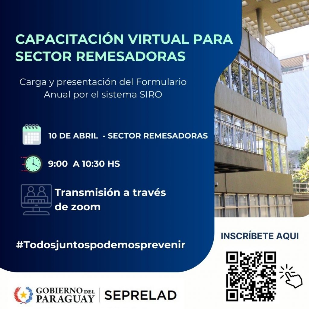 SEPRELAD invita a los Oficiales de Cumplimiento del Sector Remesadoras para participar de la capacitación virtual