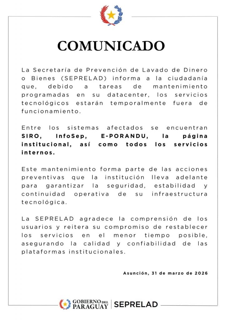 La Secretaría de Prevención de Lavado de Dinero o Bienes informa a la ciudadanía que, los servicios tecnológicos estarán temporalmente fuera de...